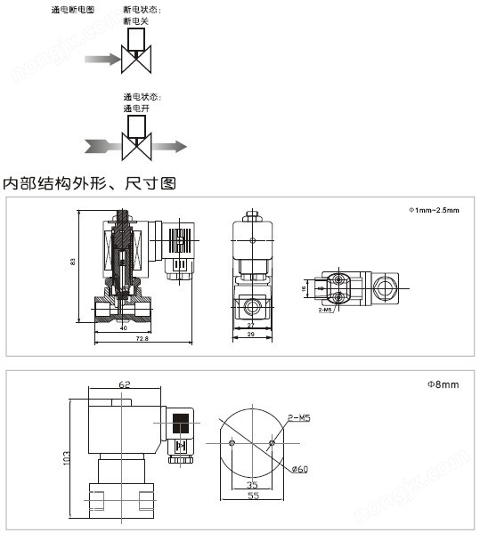 | 線圈型式和編號 | 電壓 | 功率 | 所配電磁閥流量通徑 | ||||