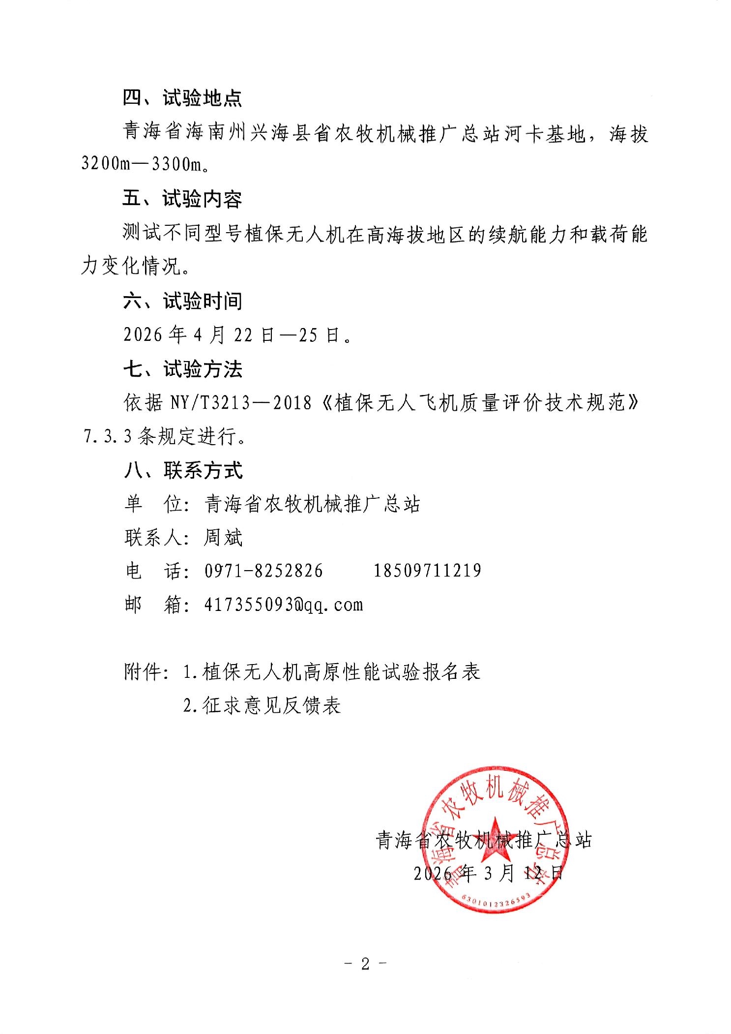 青海省農(nóng)牧機(jī)械推廣總站關(guān)于開展2026年植保無人機(jī)高原性能試驗(yàn)的通告